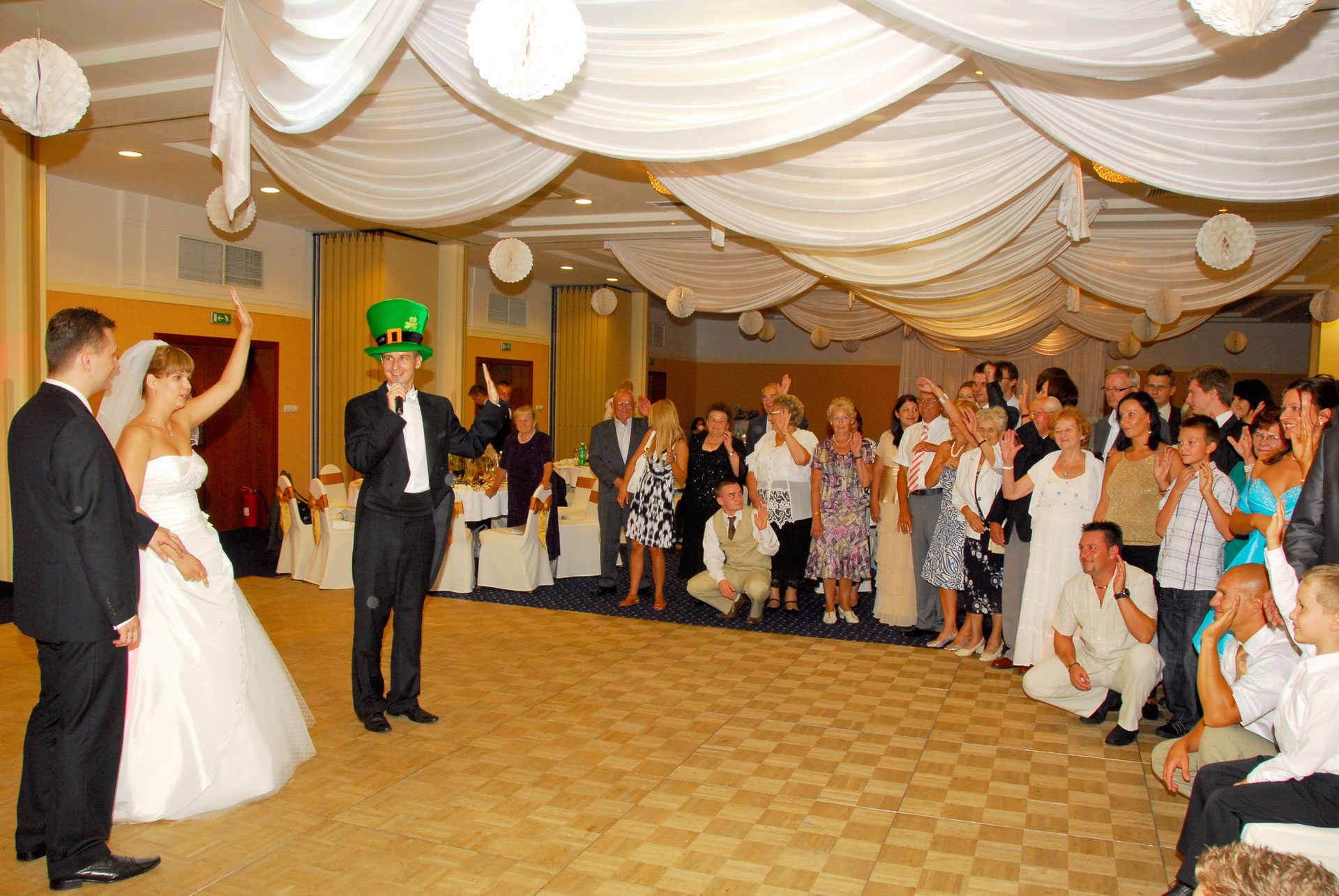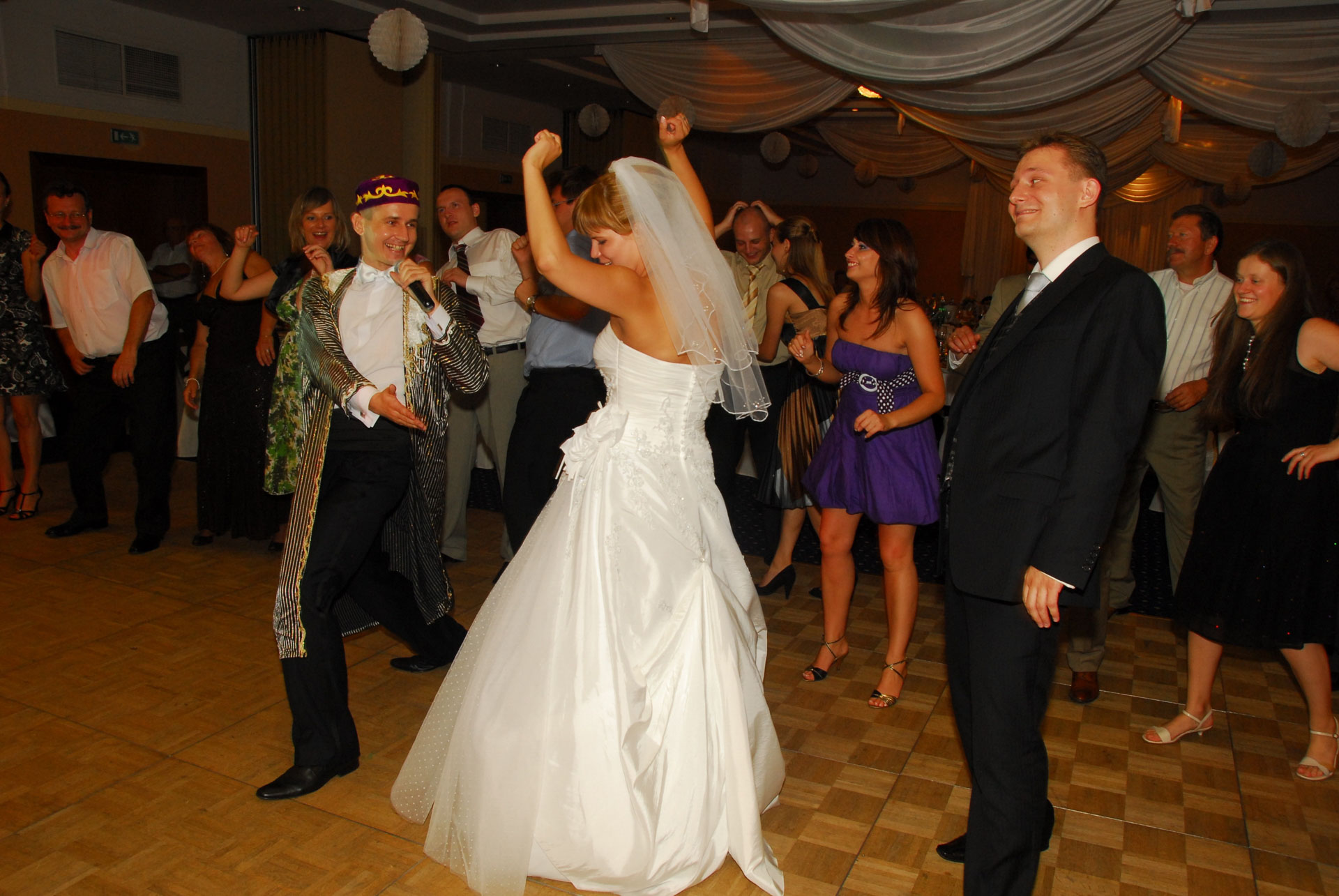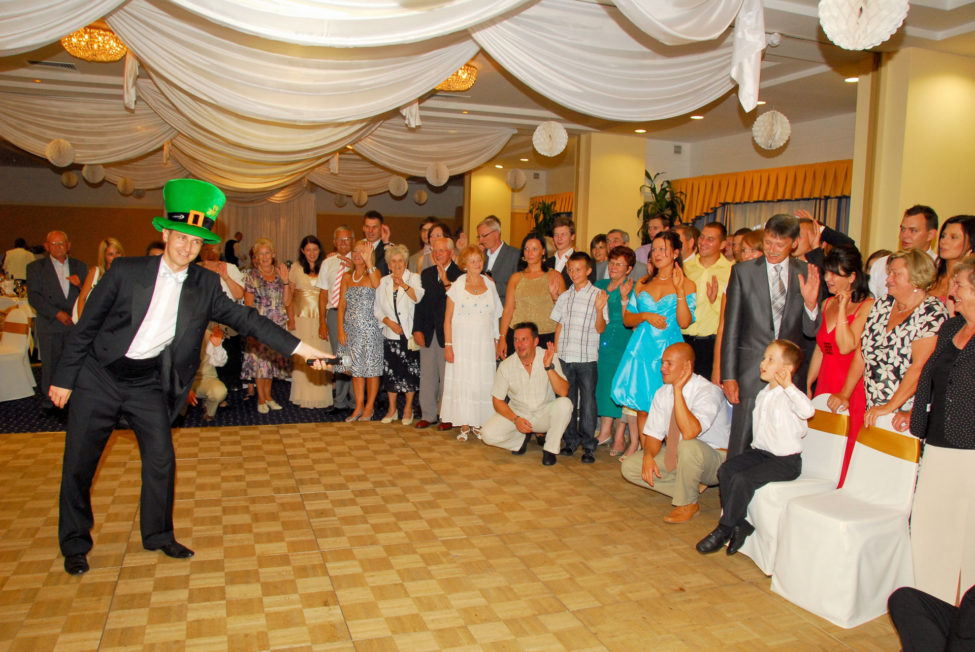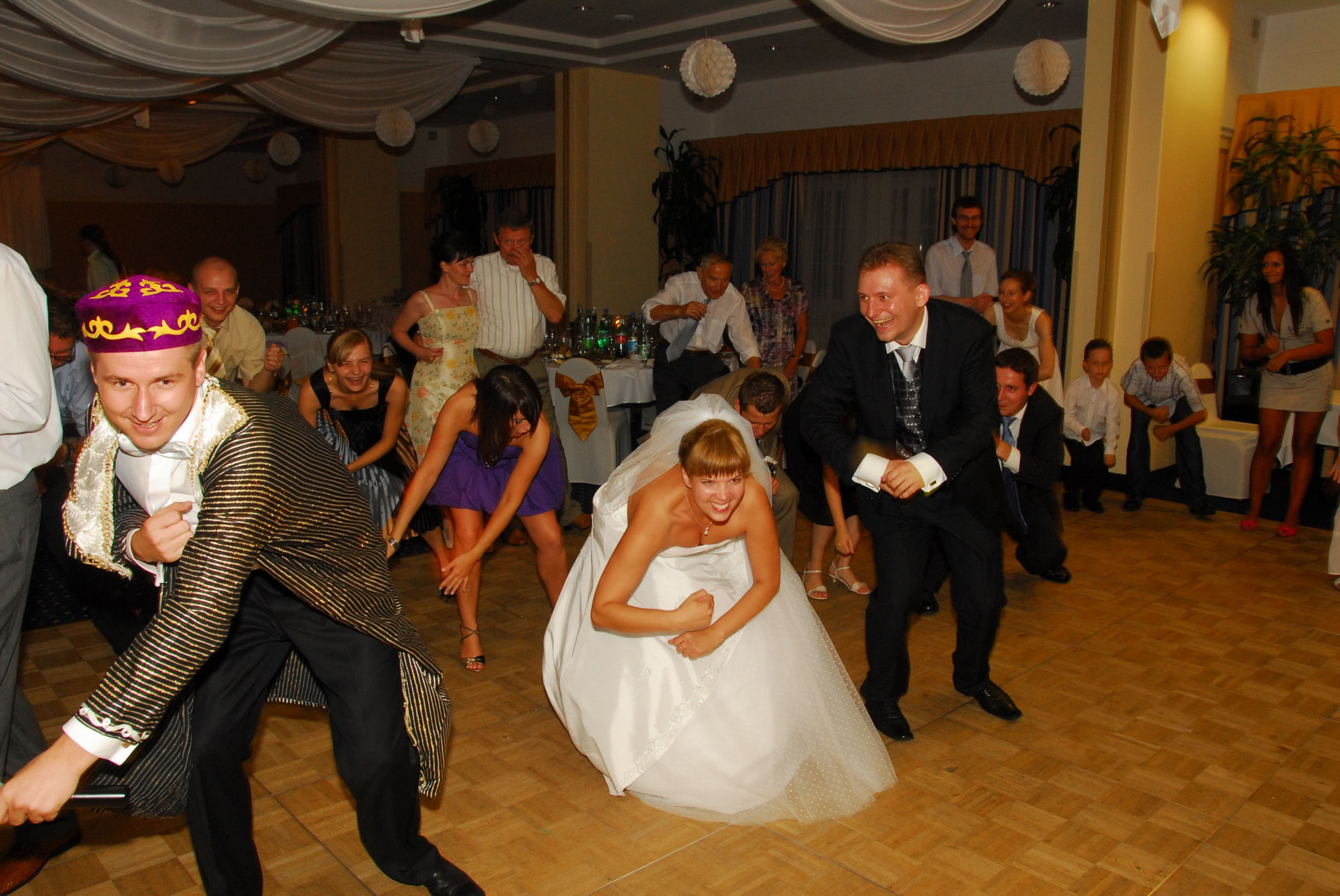 Polonez – narodowy polski taniec – prowadzony przez wodzireja Karpika na weselu