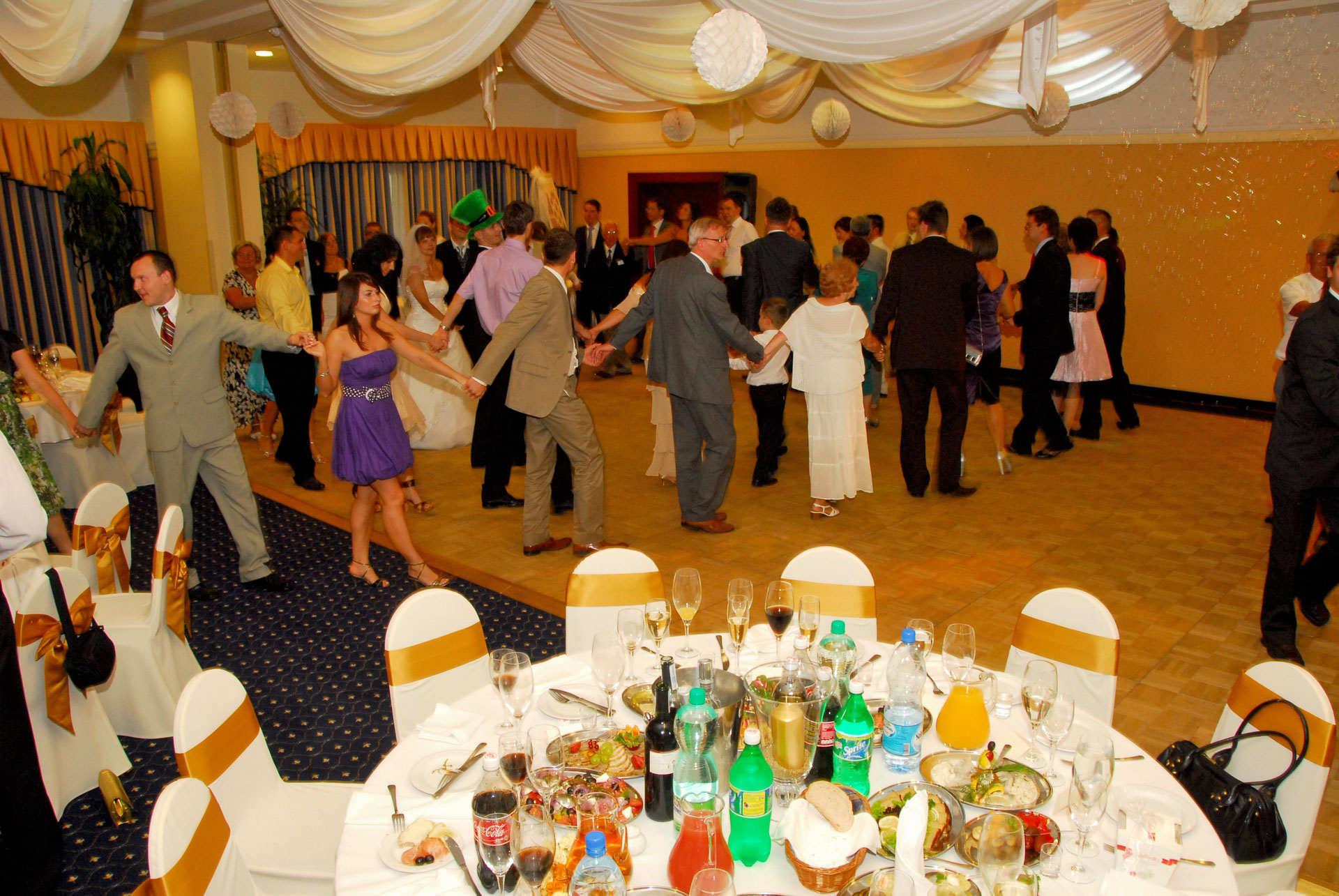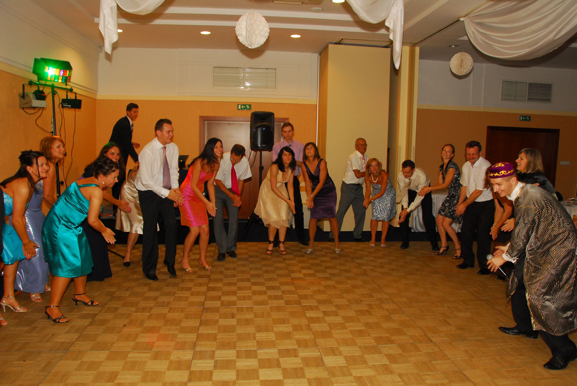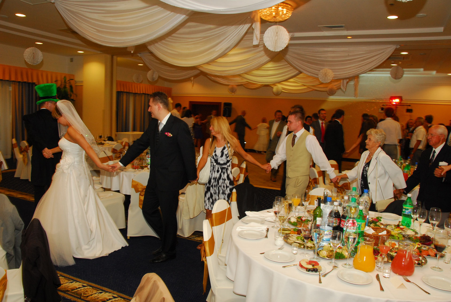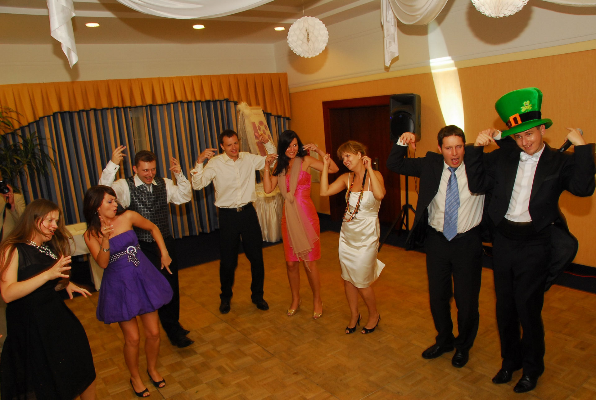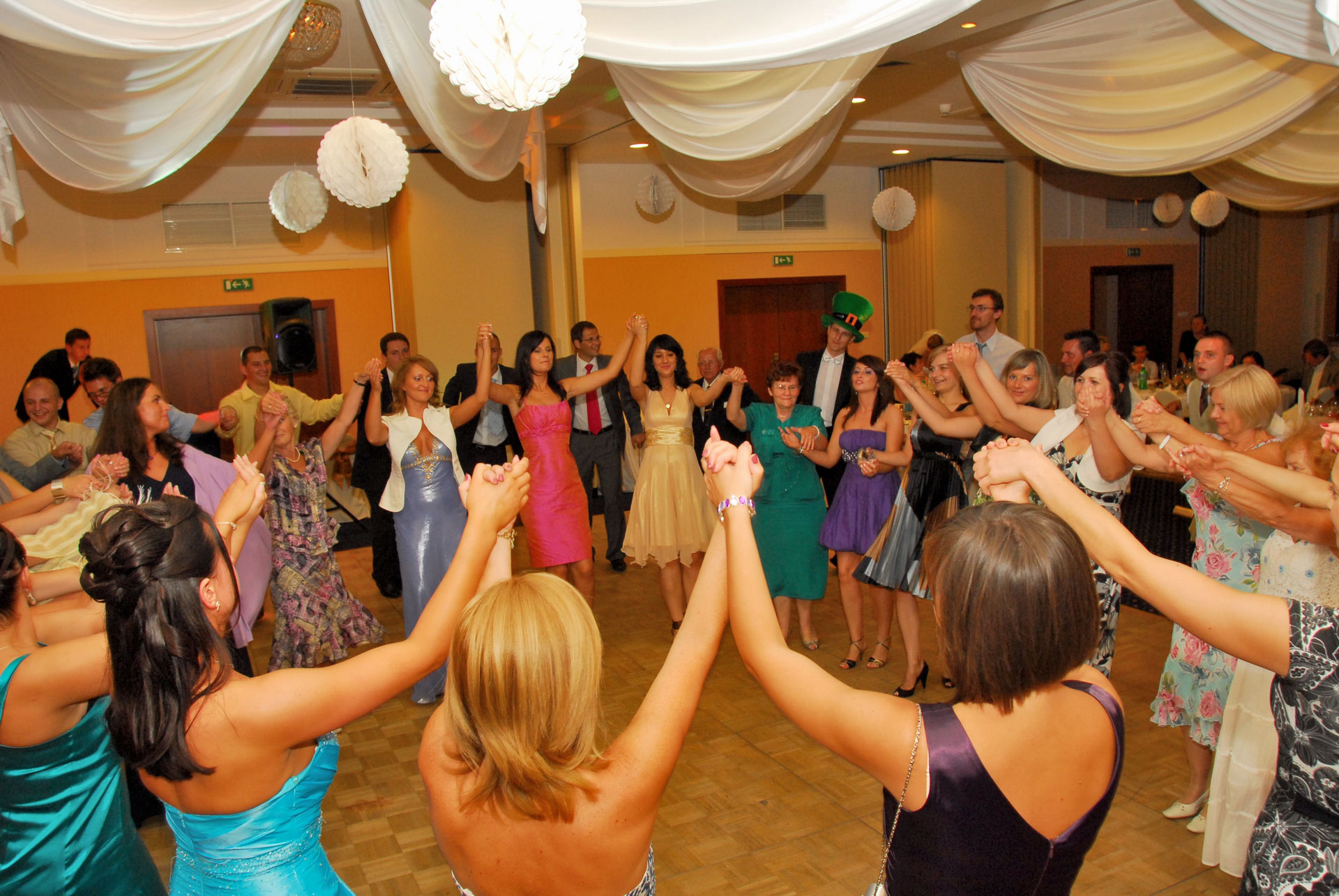 Polonez – narodowy polski taniec – prowadzony przez wodzireja Karpika na weselu