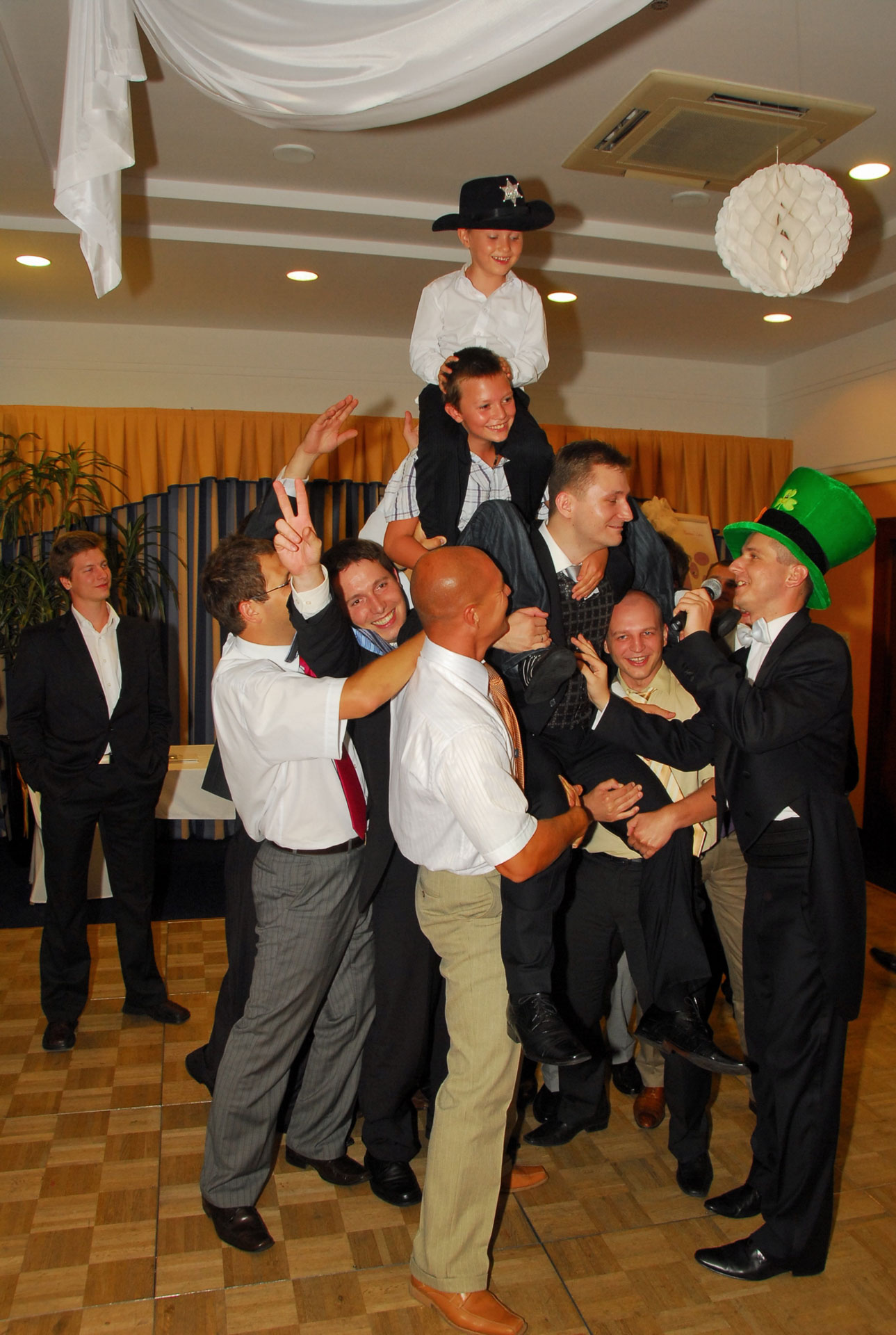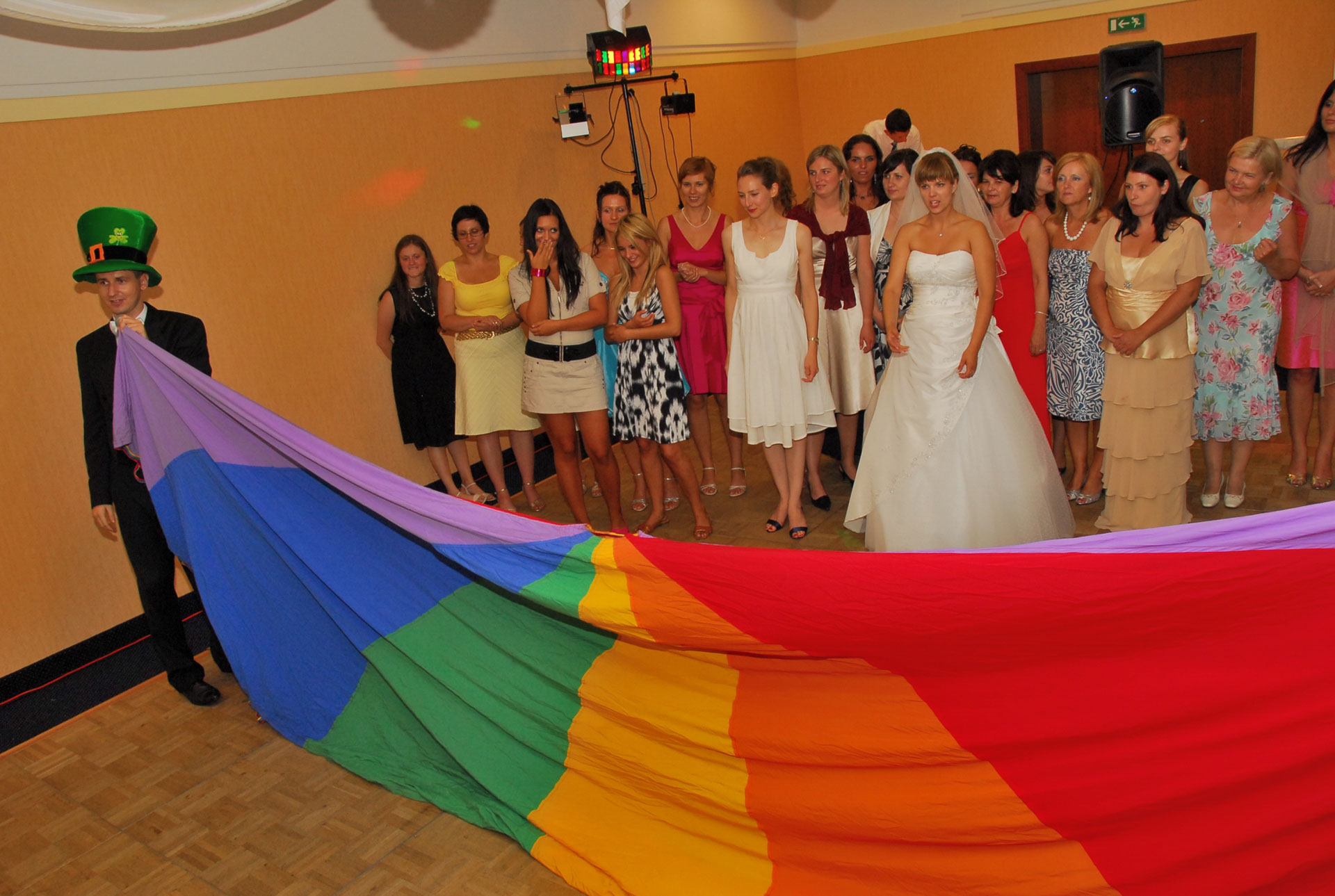 W tamtym czasie korzystaliśmy z takich atrakcji jak balony z wróżbami małżeńskimi, od których od tego czasu już odeszliśmy. Podczas oczepin nie zabrakło wtedy chusty animacyjnej oraz „pomników miłości”, które były stałym elementem programu. Zdjęcia doskonale oddają atmosferę tamtego wieczoru – pełną radości, entuzjazmu i aktywności gości, którzy chętnie angażowali się w każdą proponowaną zabawę.