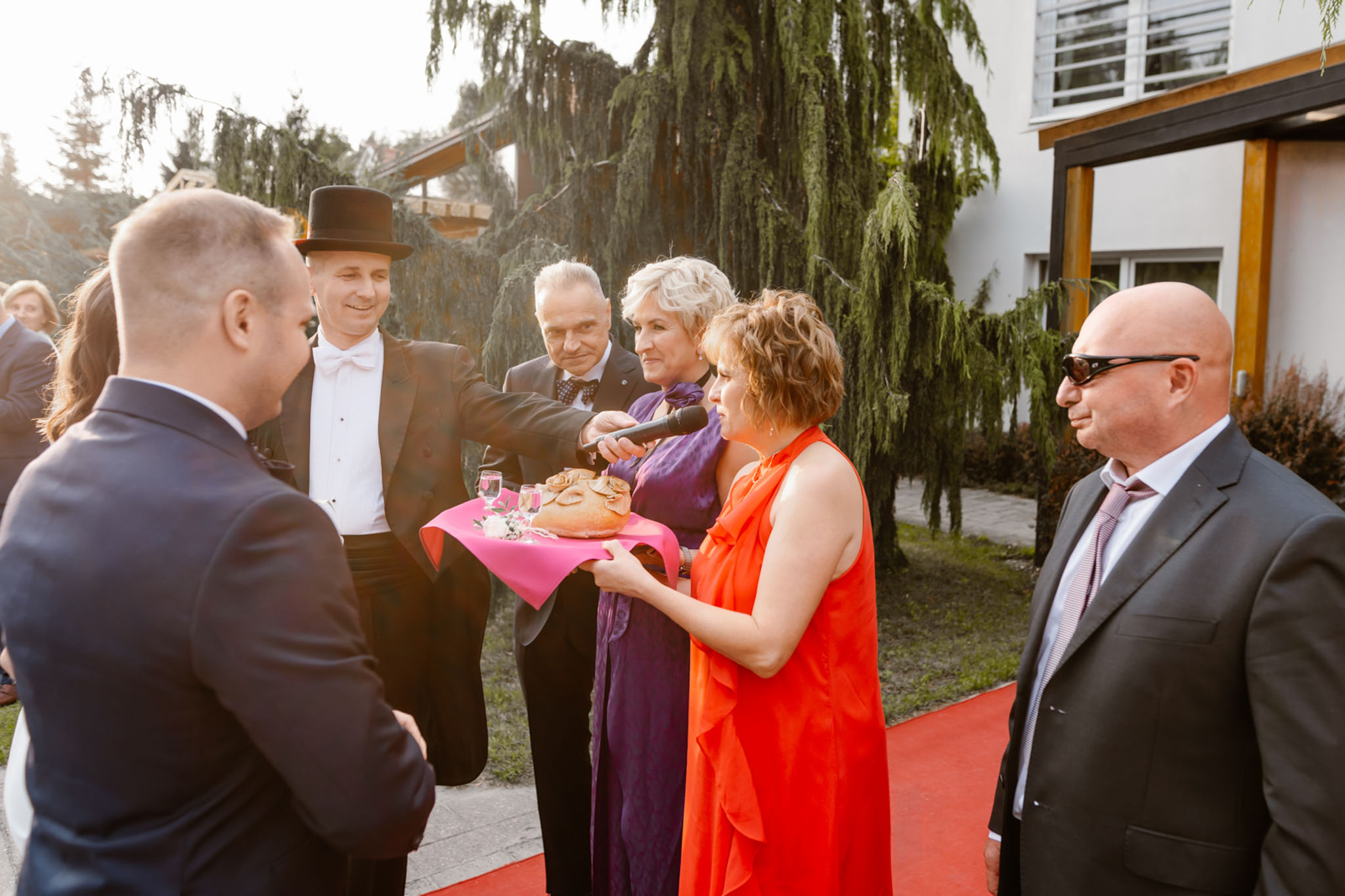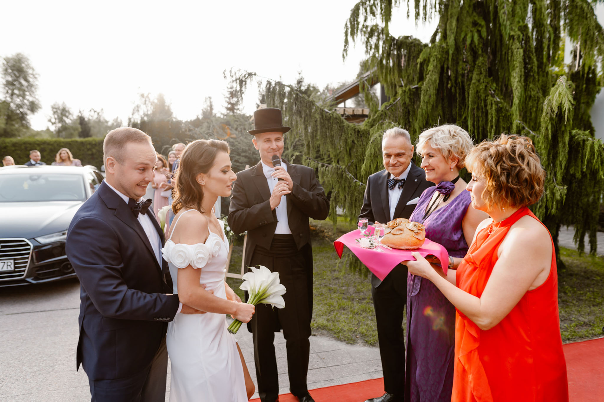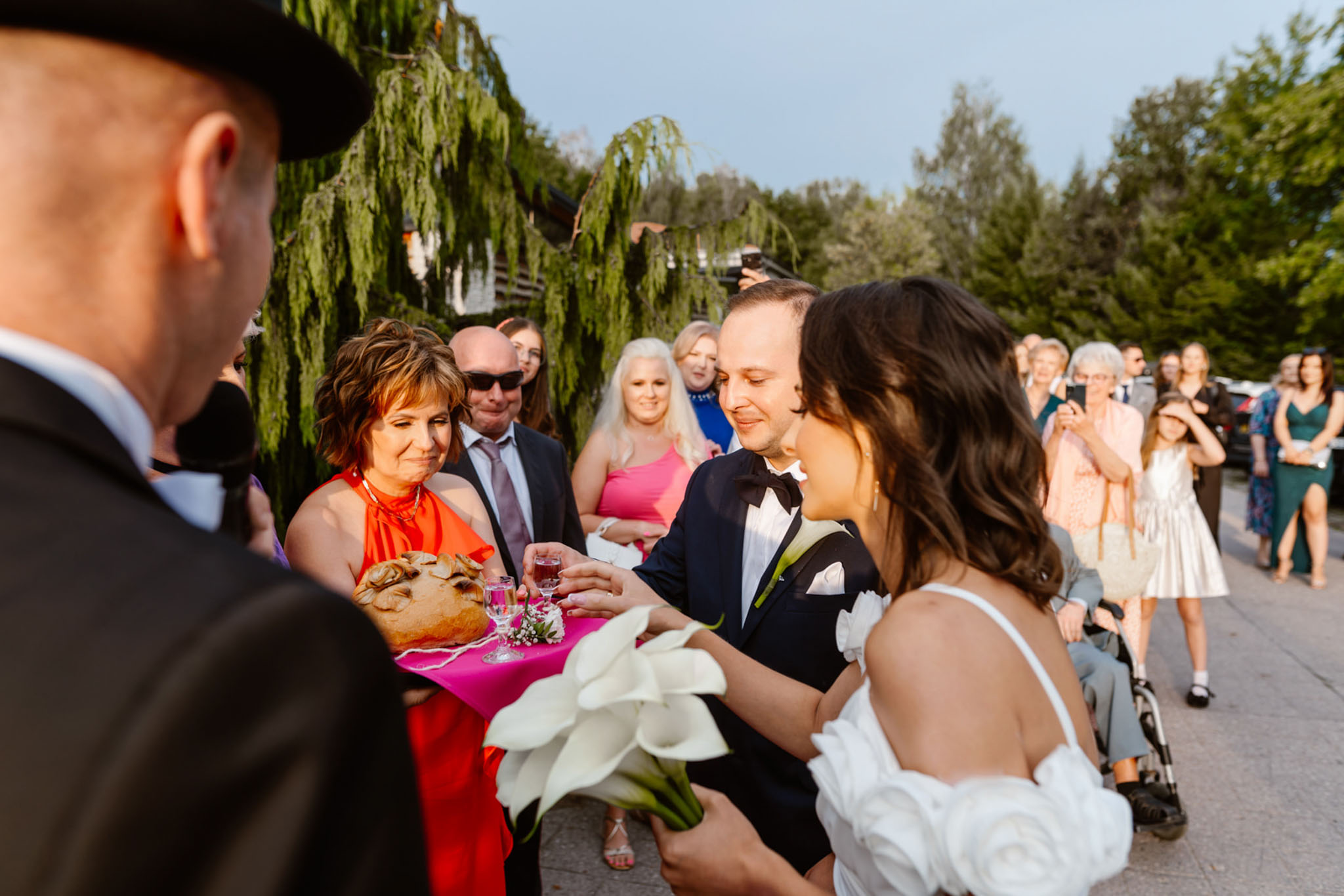 Powitanie chlebem i solą przez rodziców na weselu z wodzirejem