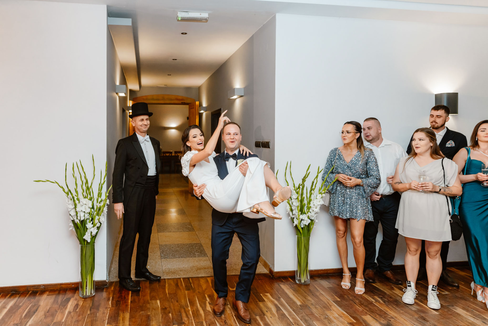Powitanie Państwa Młodych przed salą weselną