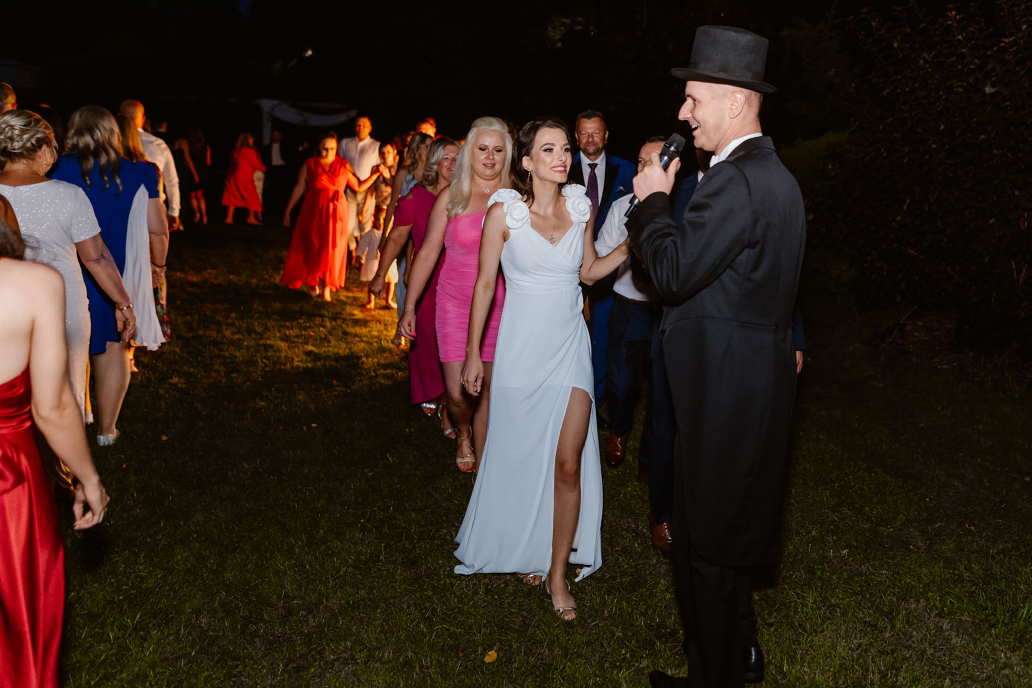 Wodzirej Karpik prowadzący taniec na weselu