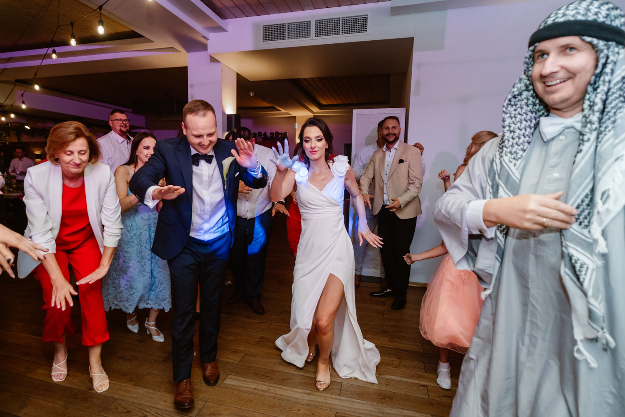 Para Młoda tańczy na weselu z gośćmi