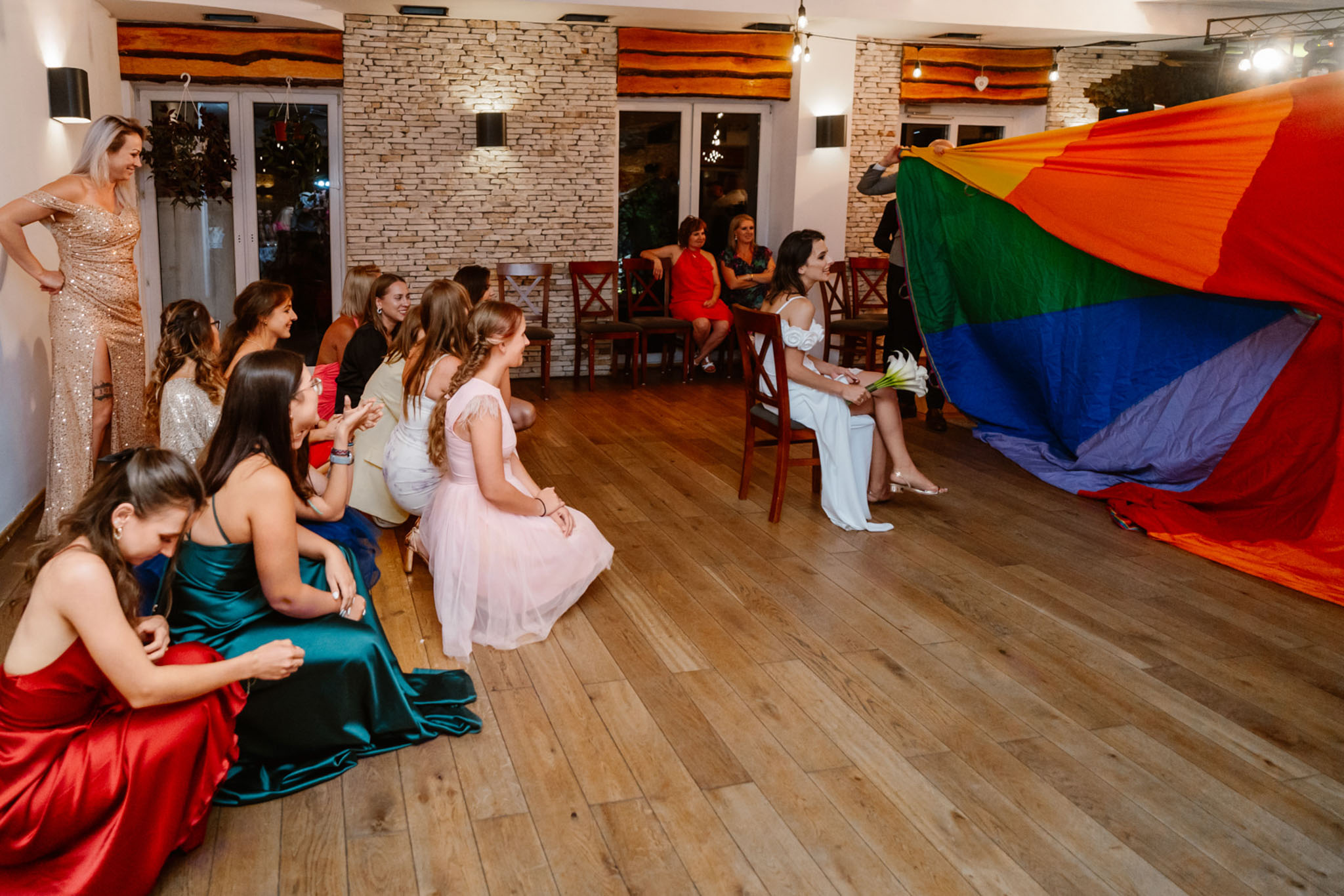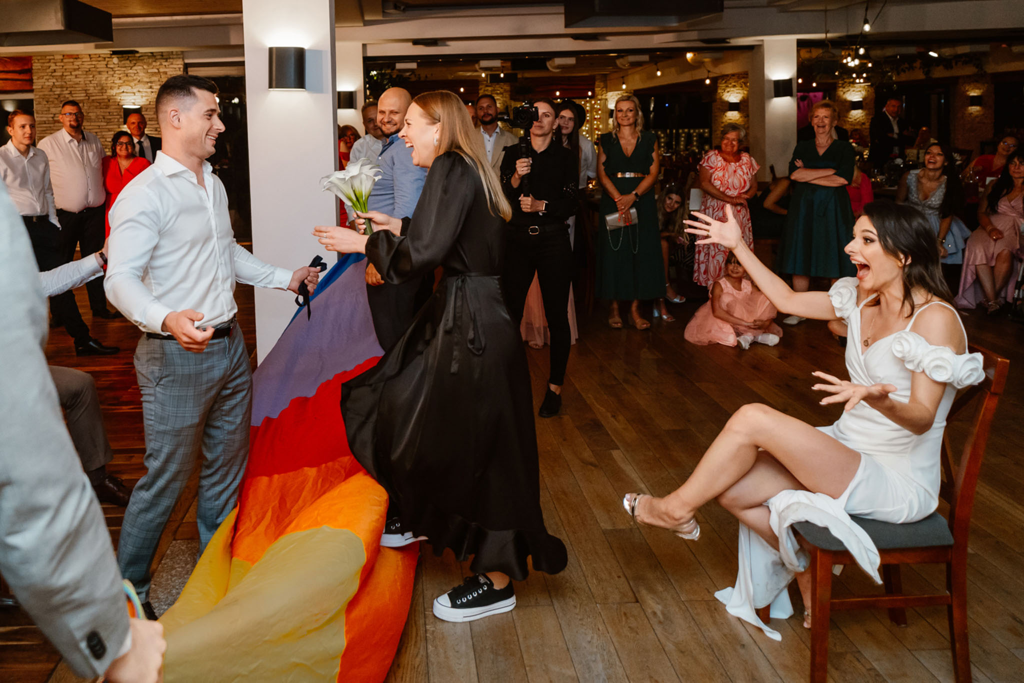 Panna Młoda podrzucana przez gości weselnych