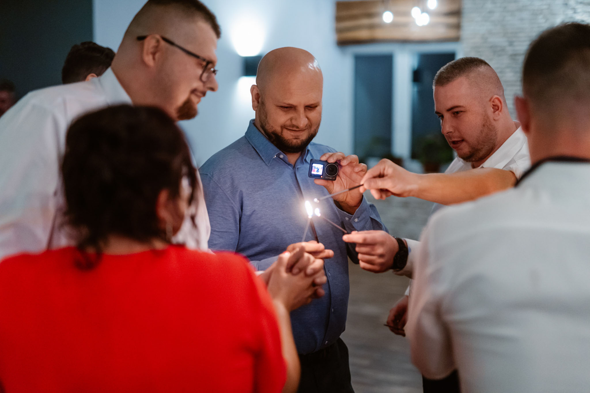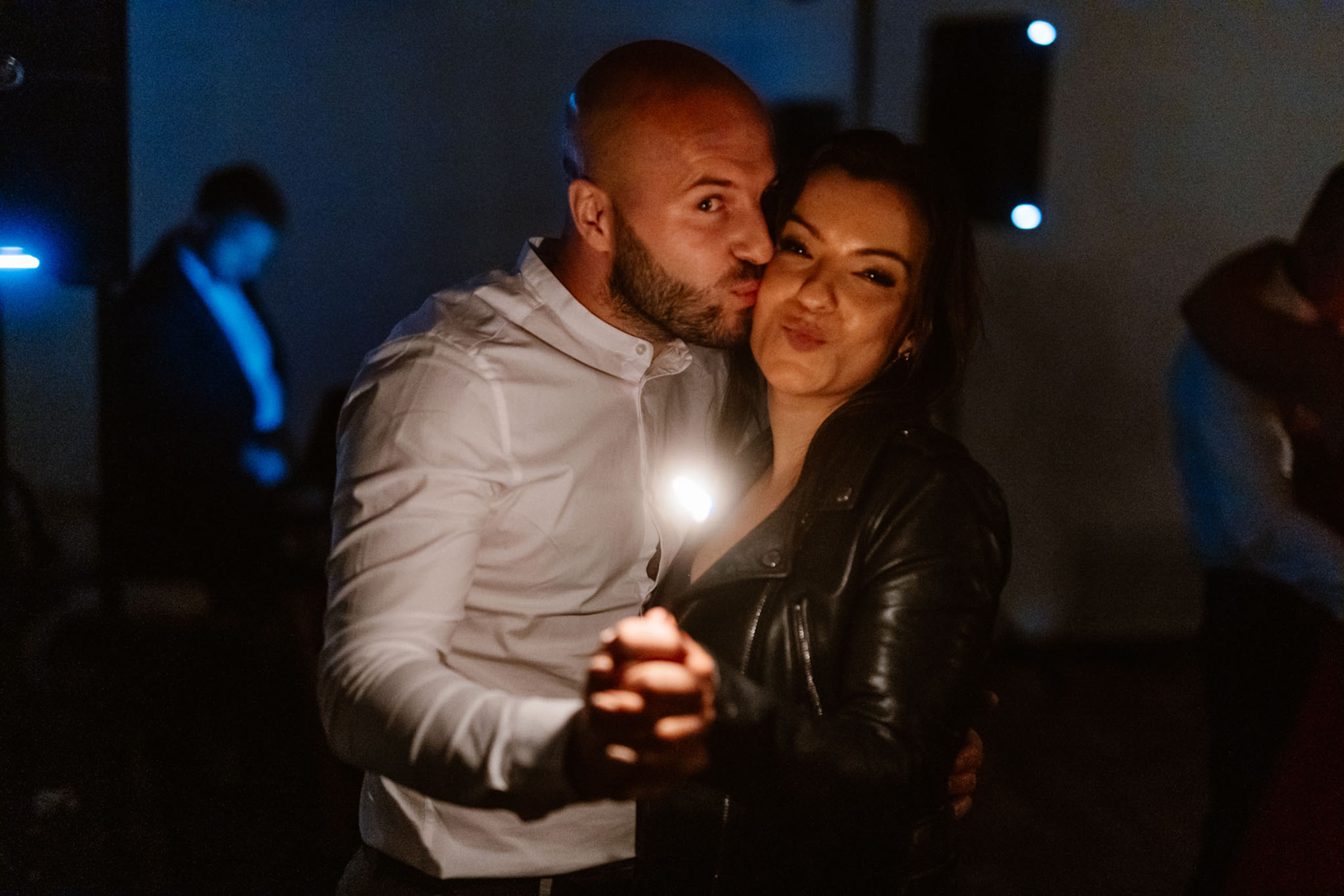 Niezapomnianym momentem były również oczepiny, które wprowadziły do przyjęcia dodatkową dawkę emocji. Tort w kształcie pizzy okazał się oryginalnym i smakowitym akcentem – to było coś, czego nikt się nie spodziewał. Wieczór zyskał również wyjątkowy wymiar dzięki walcowi świetlistemu, który rozświetlił parkiet małymi płomykami świec.