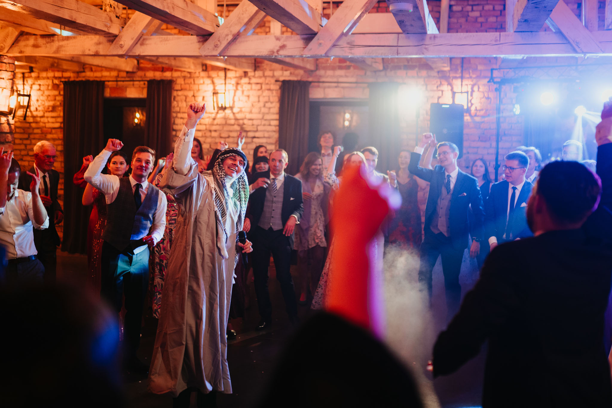 Jednym z zaskakujących elementów był moment, gdy na chwilę przebraliśmy się w strój arabski. Ten akcent wywołał zdziwienie i trochę uśmiechu, dodając przyjęciu jeszcze więcej dynamiki.